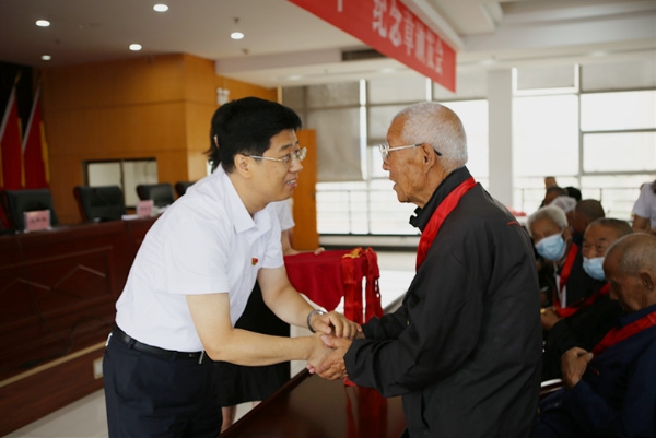 王海刚向获得纪念章的老党员表示祝贺,感谢他们为党的事业作出的重要贡献。他指出,闪闪的纪念章镌刻着辉煌,闪耀着荣光,颁发“光荣在党50年”纪念章,充分体现了以习近平同志为核心的党中央对老党员的高度重视和亲切关怀,是党中央对广大老党员对党忠诚、勤勉奉献的肯定和褒奖。老党员们手捧纪念章心潮澎湃,纷纷表示将珍惜荣誉,不忘初心,牢记初心,继续发挥余热,为推动蔡家坡经开区高质量发展贡献智慧和力量。