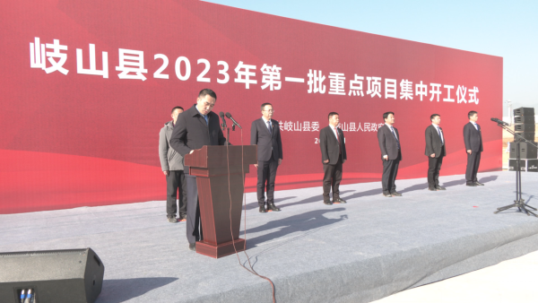 1月7日,岐山县举行2023年第一批重点项目集中开工仪式。县委书记、蔡家坡经开区党工委书记杨鹏程下达开工令。县长、蔡家坡经开区管委会主任张军辉主持项目集中开工仪式。县人大常委会主任王辉、县政协主席刘玉广、县委副书记李少鹏参加项目开工仪式。